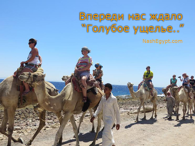 Началась о получасового опоздания..Первые туристы забыли взять паспорт, а гид забыл спросить о них, а они необходимы ,бо часто встречаются КПП на которых могут остановить. Так что паспорта на экскурсии в первую очередь берем. И поехали мы на белом джипе в район Нувейбы смотреть белый каньон. Сначала по шоссе отличного качества, а потом по песчаным барханам попрыгали. Чтоб уменьшить последствия тряски –ногами вжались в пол, а руками в верхние поручни, сливаясь с машиной в одно целое, доехали до каньона под заводную музыку из магнитолы джипа…дальше нас ждало увлекательное путешествие по каньону, мы перескакивали с камня на камень, протискивались в узкие лазы, мужчины проявляли свои рыцарские качества, помогая дамам преодолеть особо сложные препятствия. Похудевшая на 7 кг по диете Дюкана Юля прыгала как коза по камням с завидной легкостью. Я же в силу своей нетренированности и офисного образа жизни ясно осознала, что ловкость моя уже не та и самые сложные, на мой взгляд, преграды старалась преодолевать на пятой точке) Но мы все справились и, попив ароматного чая у бедуинов, отбыли в голубую лагуну в Дахабе, где нас ждали покатушки на верблюдах, плавание у рифов и обед. Верблюды чистенькие, ухоженные, симпатичные, даже почесала своего между ушами, но так и не поняла, понравилось ему или нет.